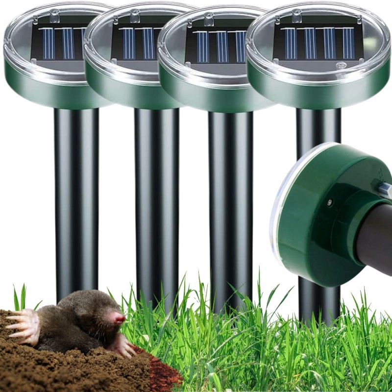 4 x Silny Odstraszacz na krety solarny Nornice Myszy Kuny Gryzonie 3400m²