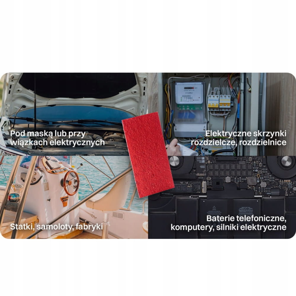 Taśma gaśnicza STOP FIRE STICKER pozwala opanować pożar klasy A, B, C oraz E i ugasić go bezobsługowo.