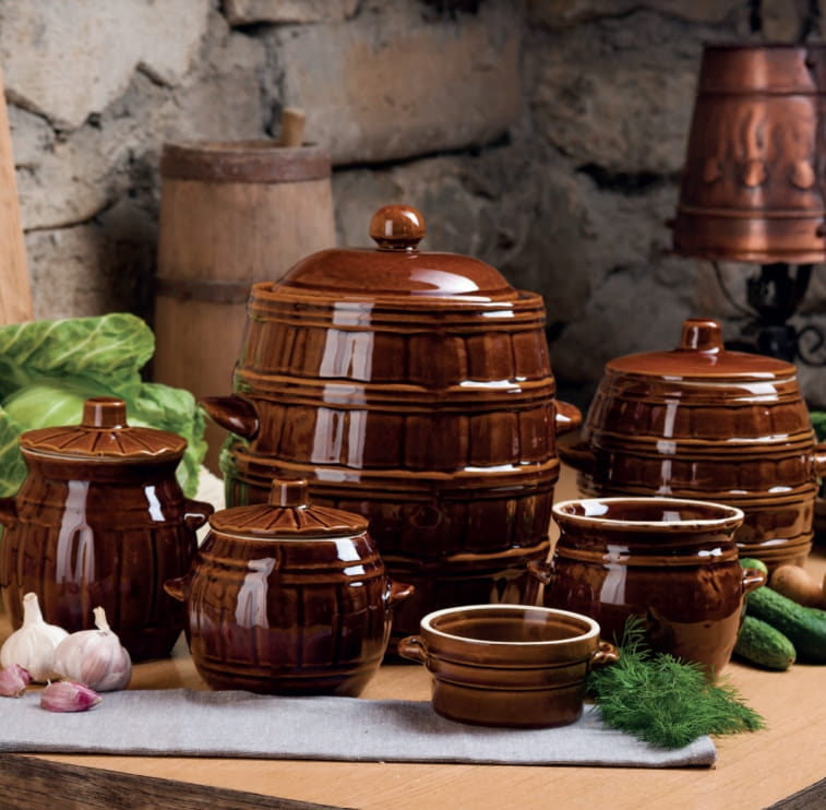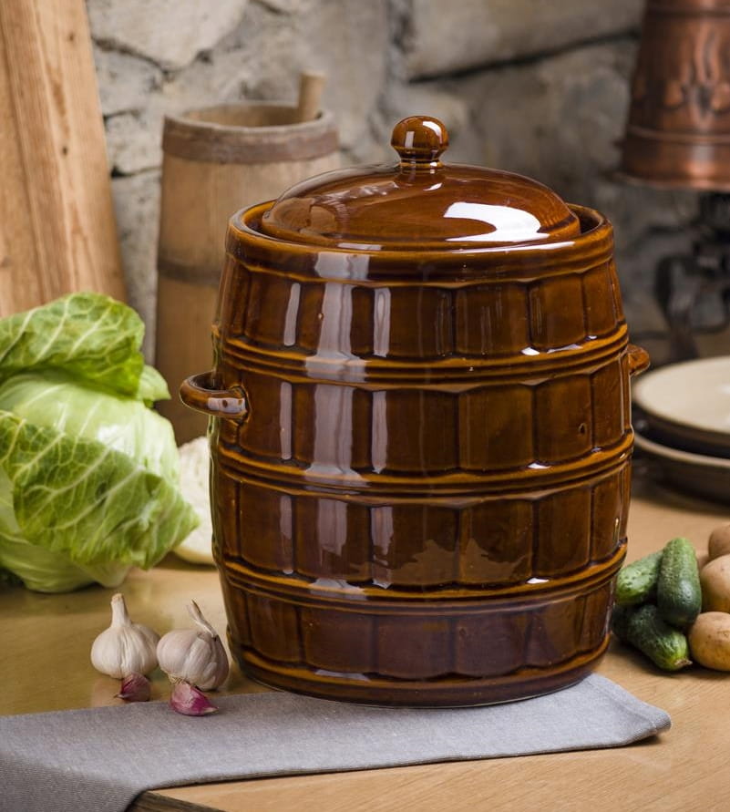 Wykonanie: kamionka | Kolor: brązowy | Zmywarka: tak | Piekarnik: tak | Mikrofalówka: tak | Beczka do kiszenia z kołnierzem: tak