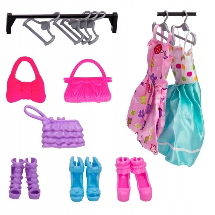 W skład zestawu garderoby na ubranka dla lalek wchodzi: