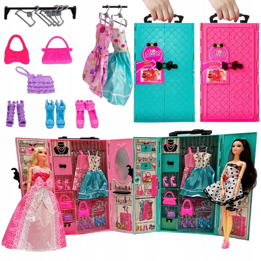 Domek dla lalek lalka szafa ubranka garderoba buty duży zestaw xxl prezent