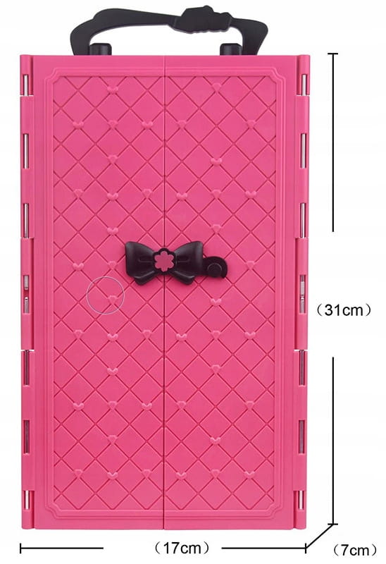▶️ Rozkładana szafa, garderoba została wyposażona w drzwi dwuskrzydłowe z zamkiem w kształcie kokardki, który zabezpiecza garderobę przed jej otwarciem.