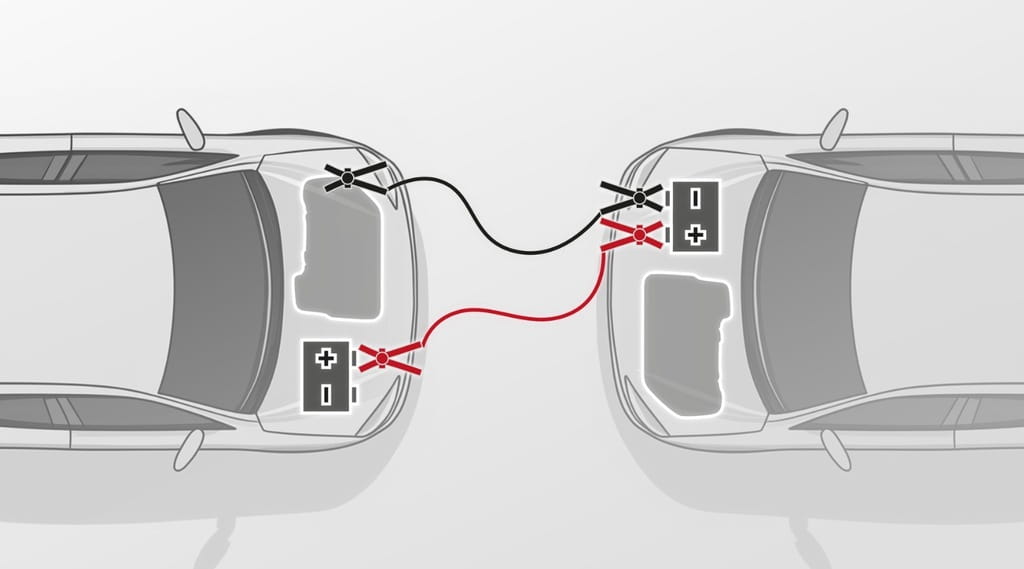 ➡️ Jak podłączyć i kable, aby odpalić samochód z rozładowanym akumulatorem od samochodu sprawnego: