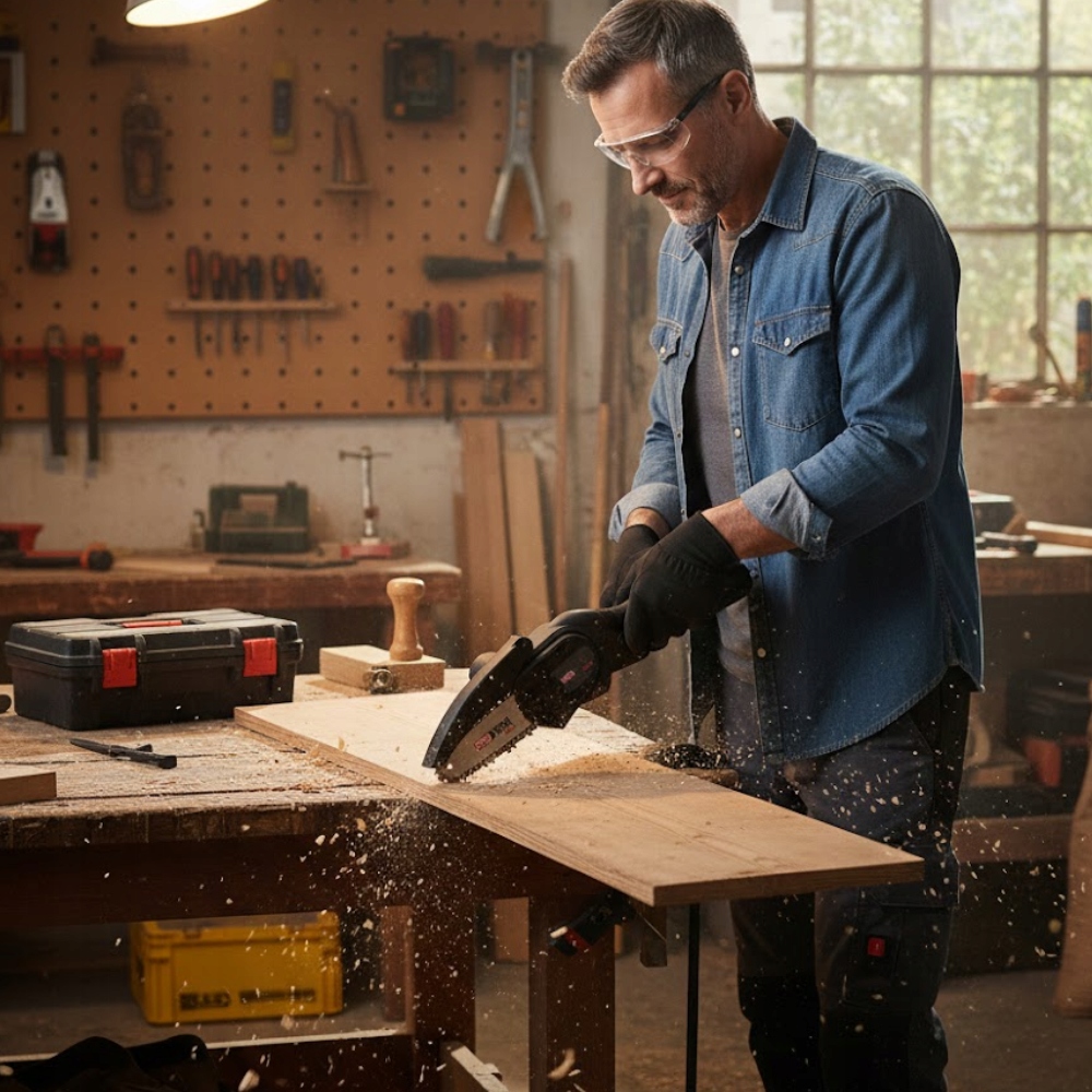- ✅ Ultra-lekka konstrukcja: Sama piła waży zaledwie 0,78 kg bez akumulatora, dzięki czemu nie obciąża rąk, umożliwiając długotrwałą pracę bez zmęczenia, nawet przy operowaniu jedną ręką.