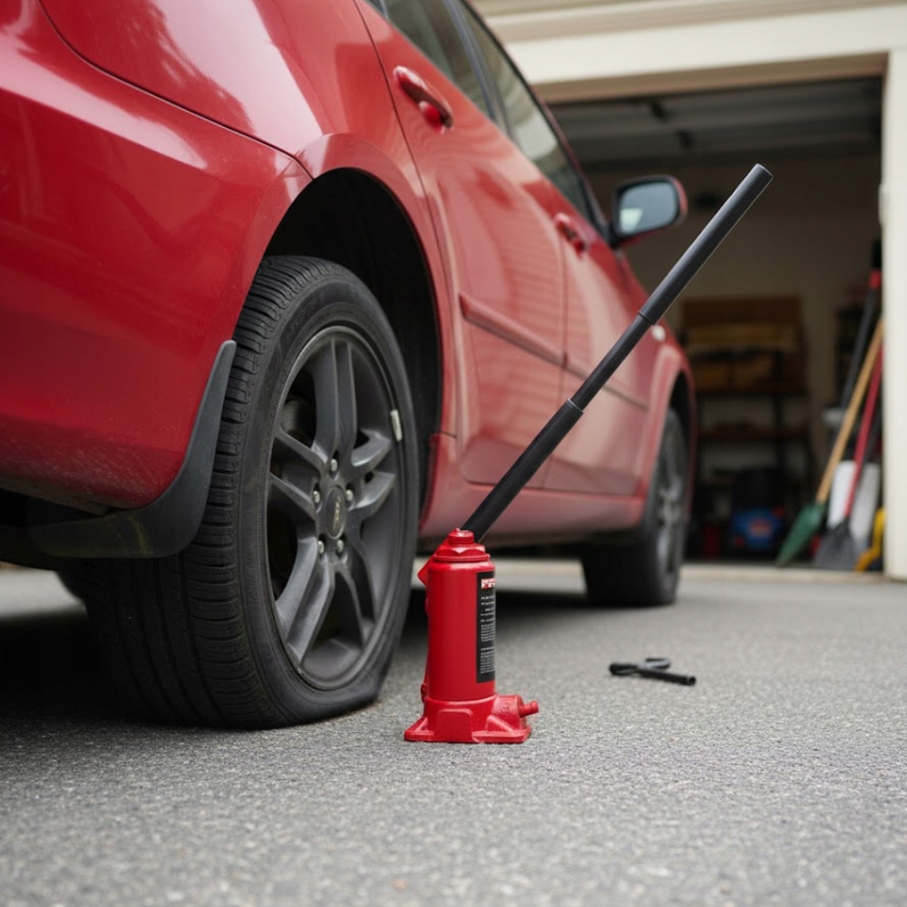 - Ergonomiczna korba: Długie ramię ułatwia obracanie śrubą, redukując siłę potrzebną do uniesienia pojazdu.