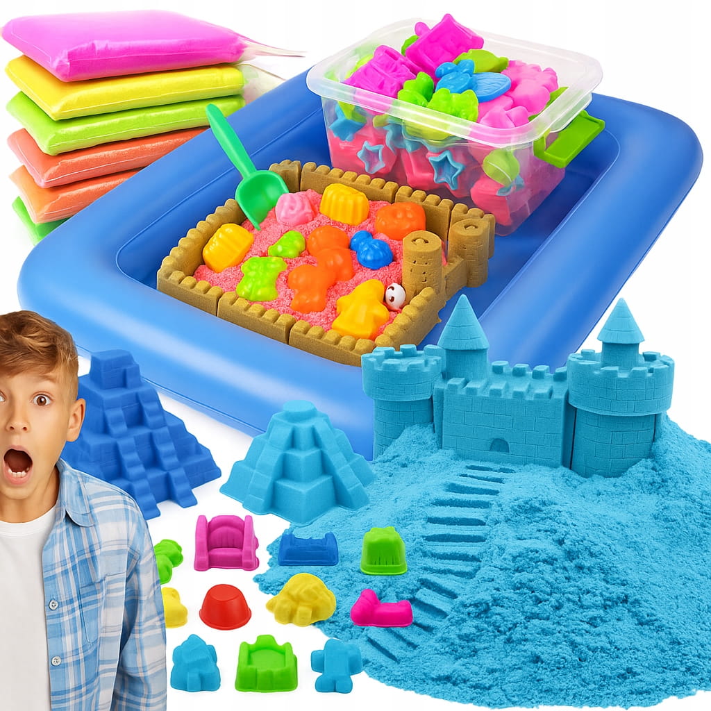 Piasek Kinetyczny zestaw 3KG Piaskownica Basen Foremki Zestaw Plastyczny XXL