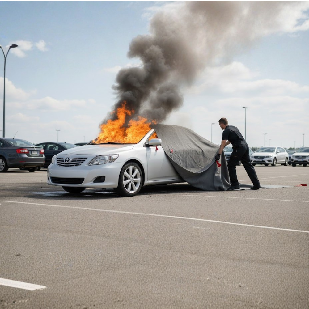 Płachta Gaśnicza Samochodowa Bridgehill Car Standard 6x8m – Skuteczna Ochrona przed Pożarami Li-ion
