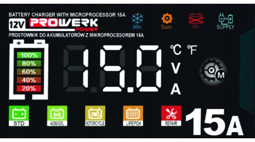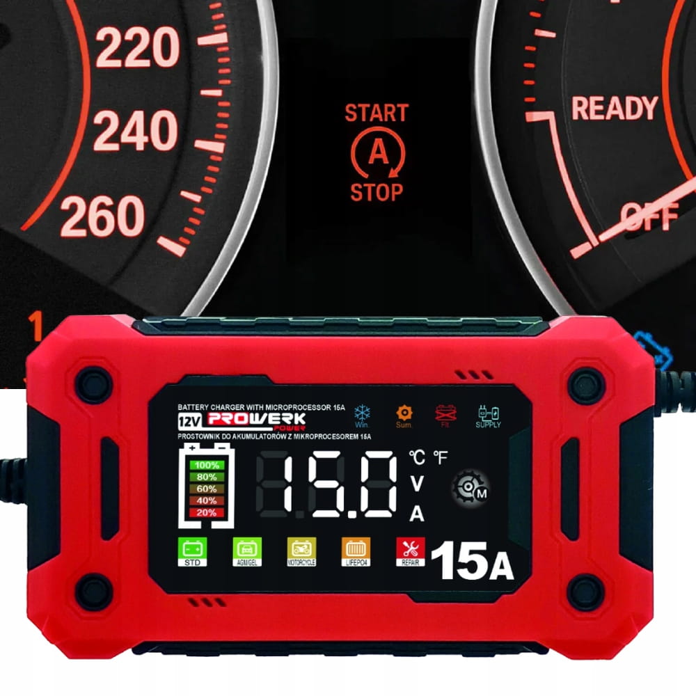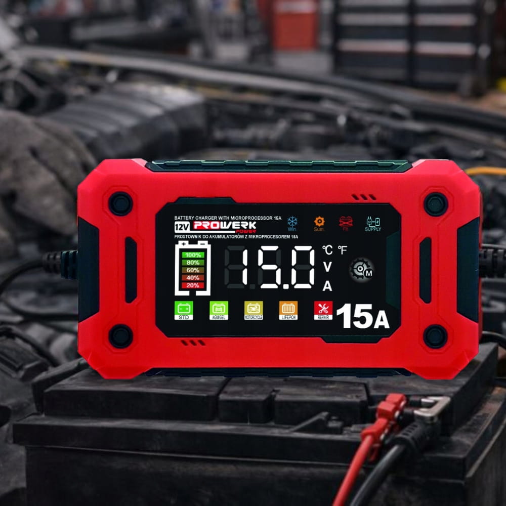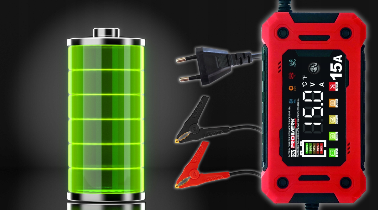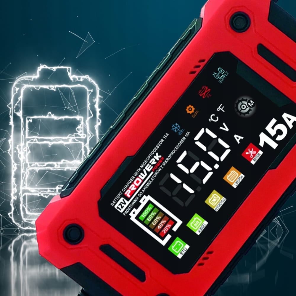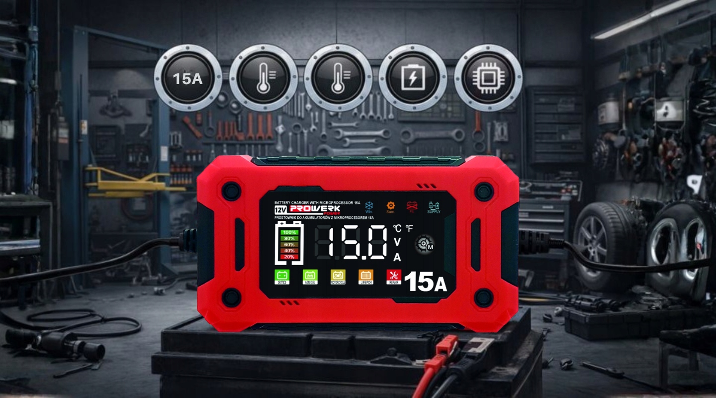Prostownik mikroprocesorowy 12V 15A – inteligentne ładowanie akumulatorów