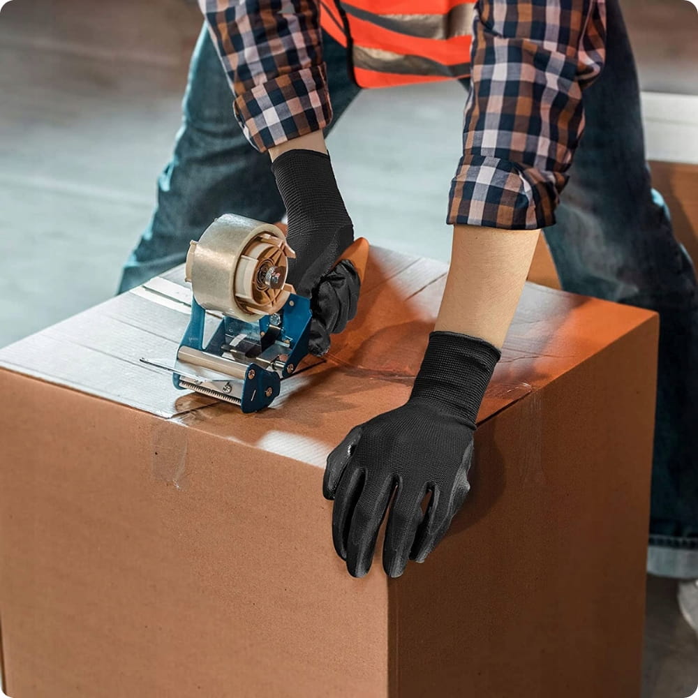 ⭐ Produkt wysokiej jakości | ⭐ Spełnia normy EN ISO 21420, CE KAT I | ⭐ Czarne Rękawice robocze | ⭐ Zakończone ściągaczem | ⭐ Wytrzymały | ⭐ Powleczone Poliuretanem| ⭐ 12par w zestawie