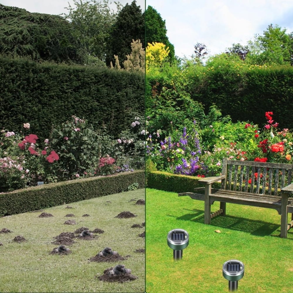 4️⃣ gdy panel solarny naładuje akumulator odstraszacz zacznie działać - ciesz się brakiem kretowisk!