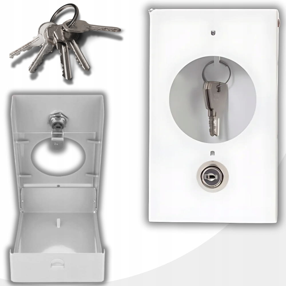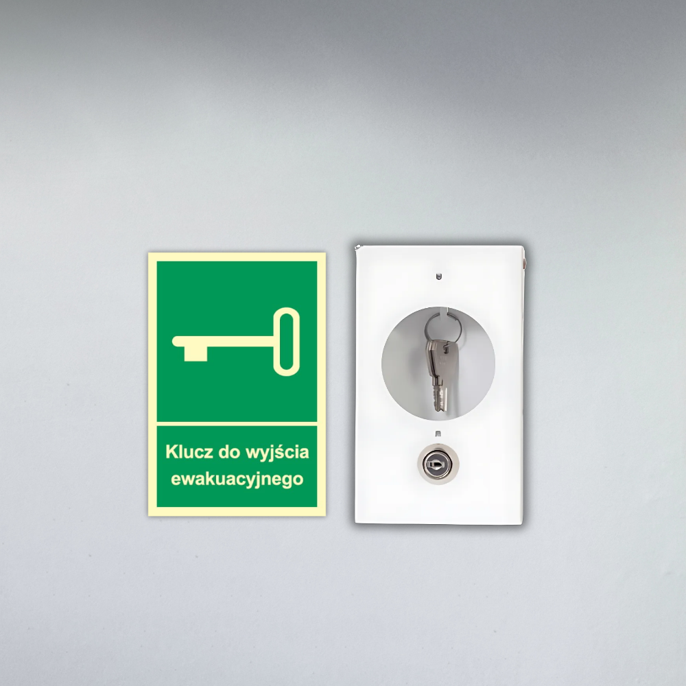 Skrzynka Metalowa na Klucz Ewakuacyjny z Zamkiem i Klucz BIAŁA + Znak Klucz