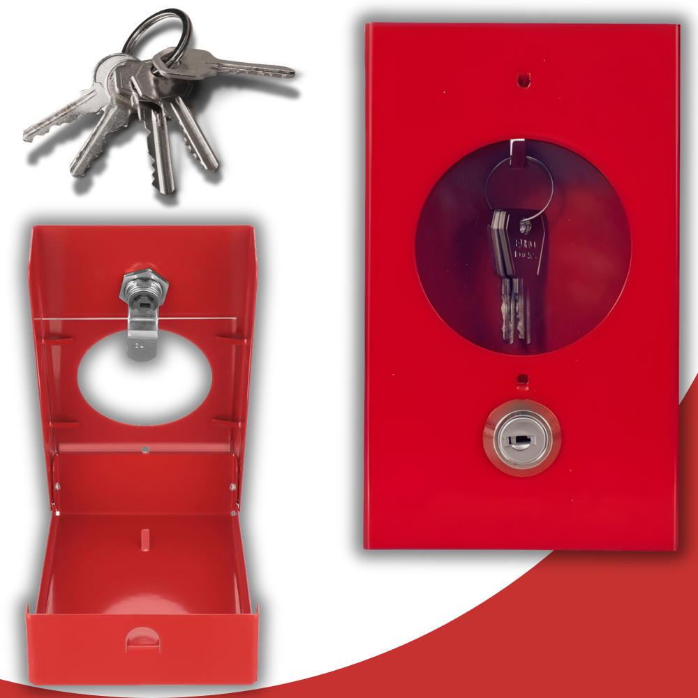 Skrzynka Metalowa na Klucz Ewakuacyjny z Zamkiem i Kluczykiem + Znak Klucz