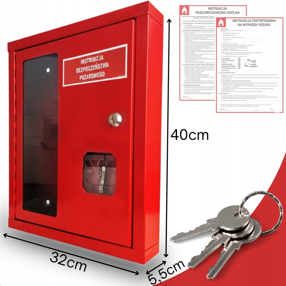 Szafka Metalowa IBP Skrzynka Na Instrukcję Bezpieczeństwa Pożarowego PPOŻ Zamykana Na Kluczyk Z Okienkiem na klucz i Instrukcję