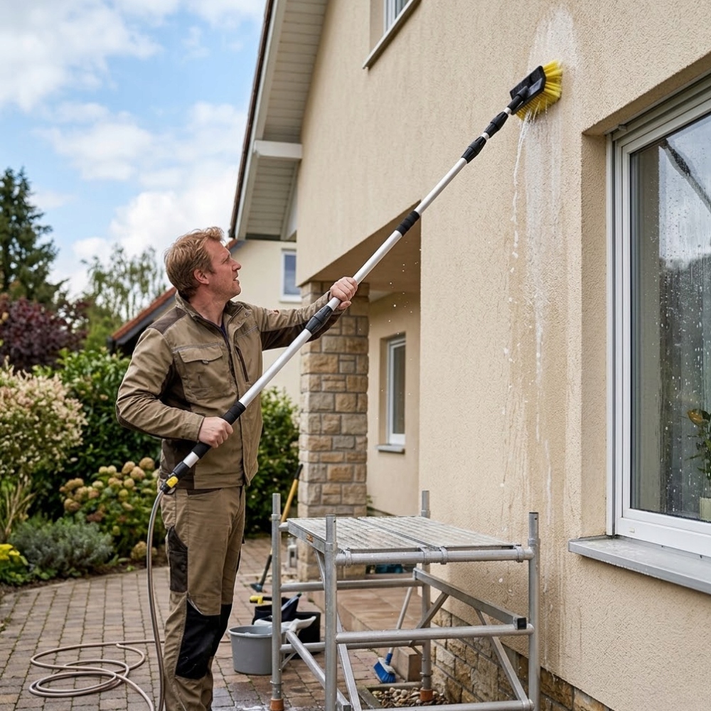 - Mycie elewacji, podbitek i witryn sklepowych: Usuń kurz, pajęczyny i zielony nalot z fasady swojego domu bez konieczności wynajmowania drogich podnośników.