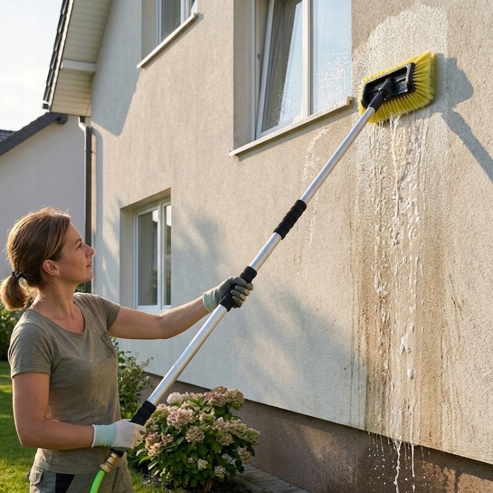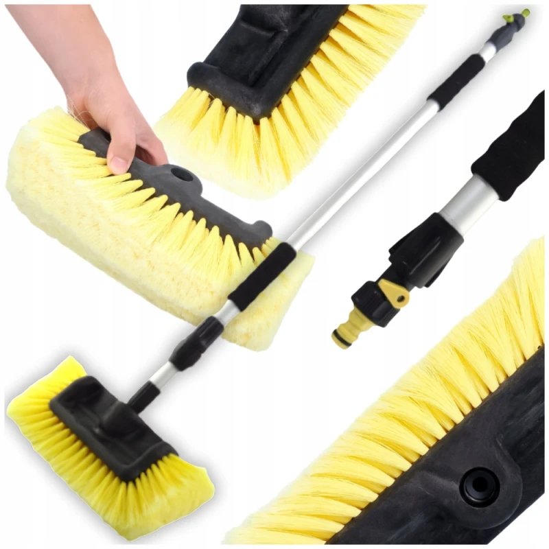 ➡️Oczywiście. Choć jej największą zaletą jest przepływ wody, doskonale sprawdza się również jako tradycyjna długa miotła do omiatania pajęczyn z elewacji czy odśnieżania wysokich aut .