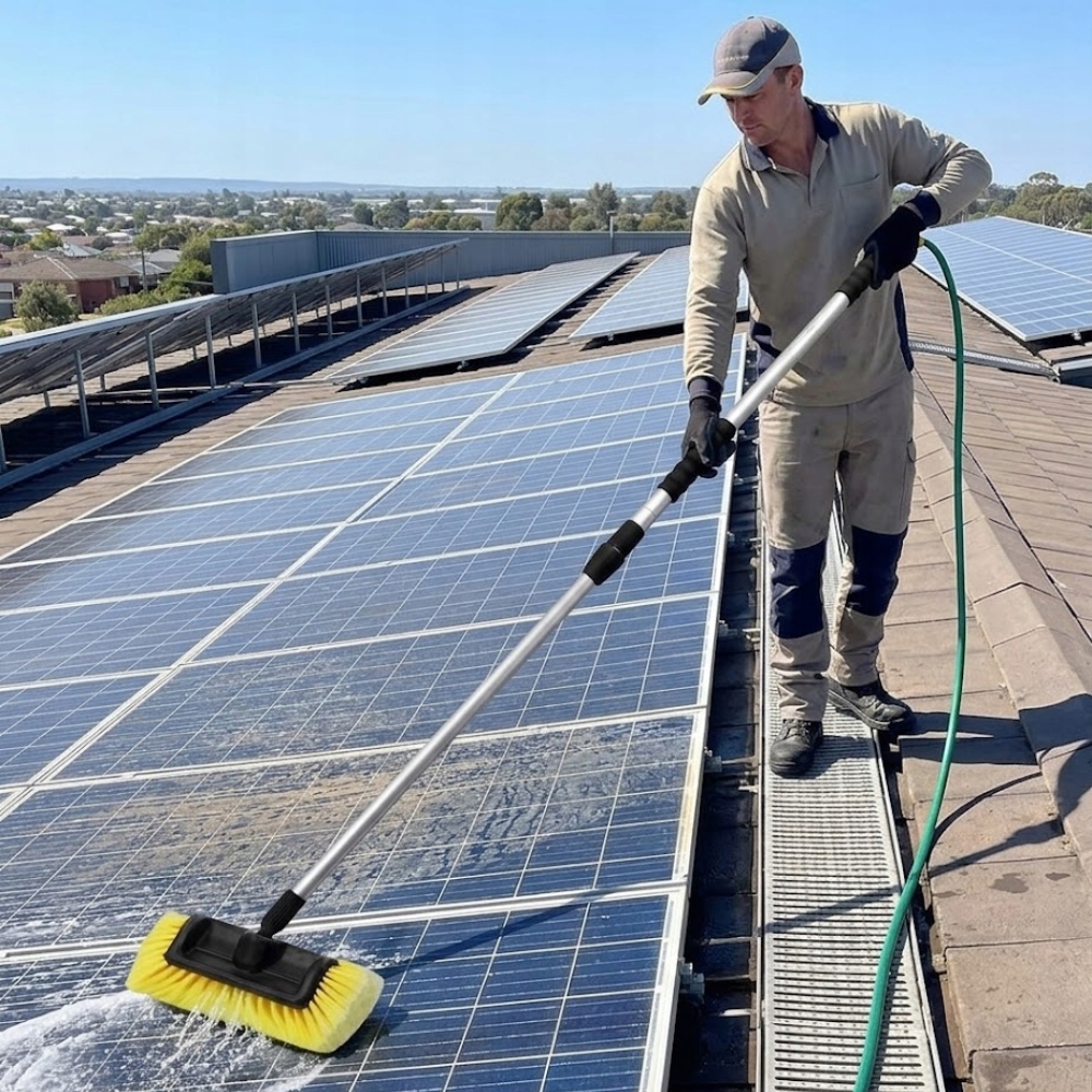 ✅ Przy myciu paneli fotowoltaicznych, wykonuj prace wcześnie rano lub późnym popołudniem, aby uniknąć gwałtownego wysychania wody na rozgrzanym szkle i powstawania smug.