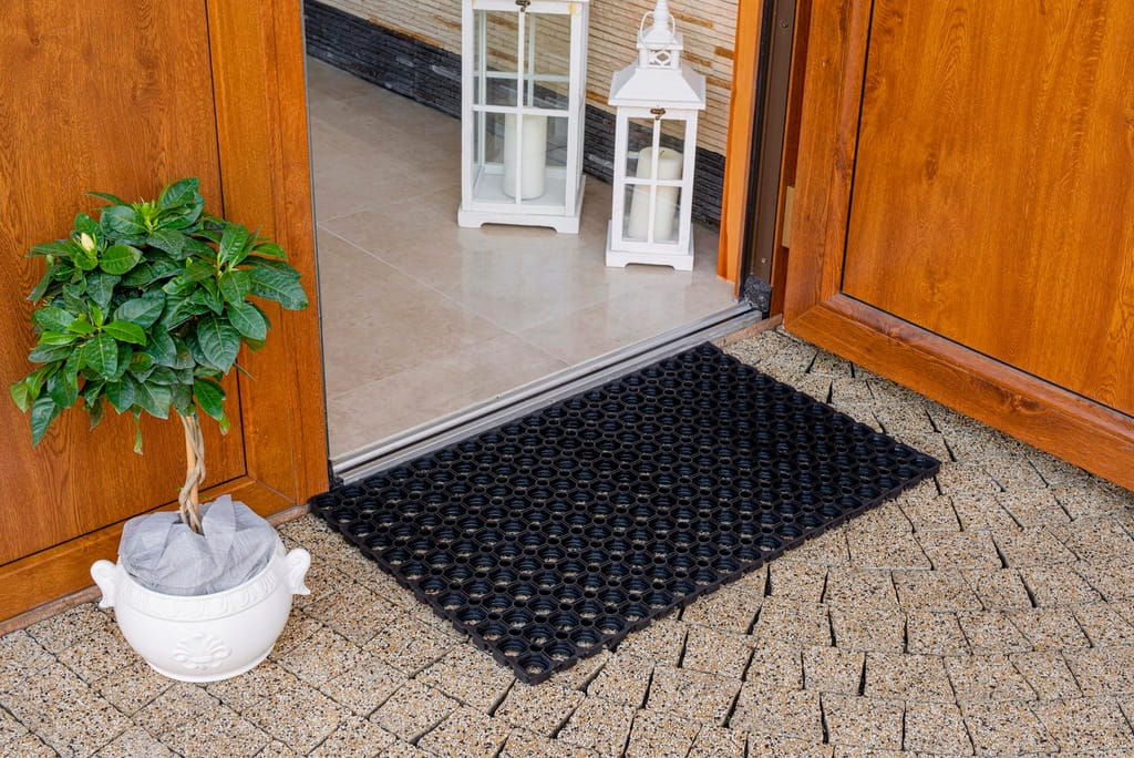 ☂️ Przedpokój: Jest to idealne miejsce do umieszczenia wycieraczki, ponieważ pozwala ona zatrzymać brud i wilgoć z butów przed wejściem do domu, chroniąc podłogi przed zabrudzeniem.