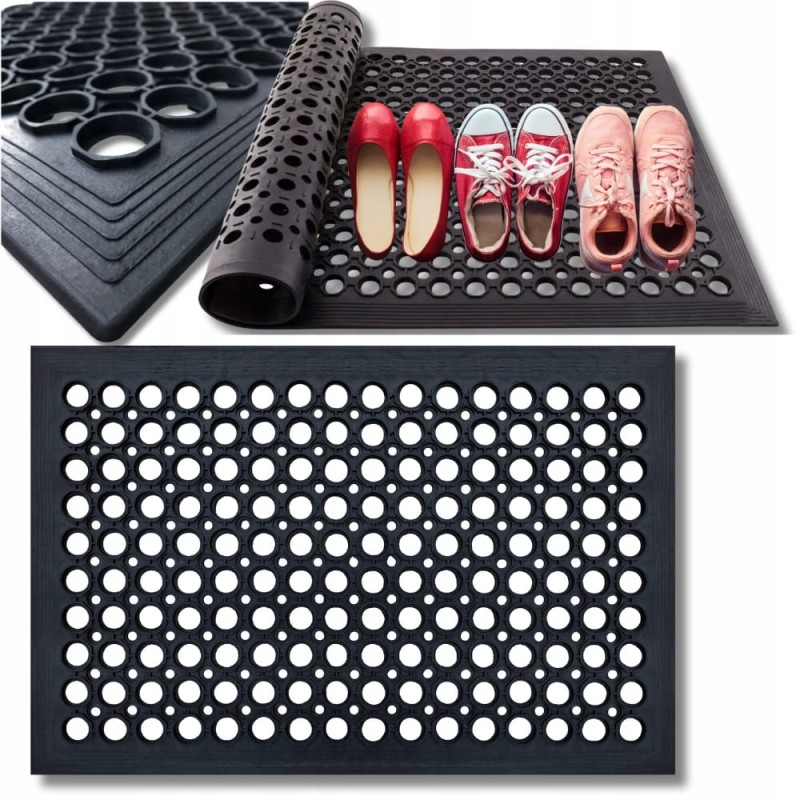 ▶️ Estetyczny wygląd: Pomimo swojej funkcjonalności, nasza wycieraczka gumowa ażurowa prezentuje się elegancko i stylowo. Jej czarny kolor oraz ażurowy wzór nadają wnętrzu przyjemny akcent wizualny, pasujący do różnych aranżacji przestrzeni.