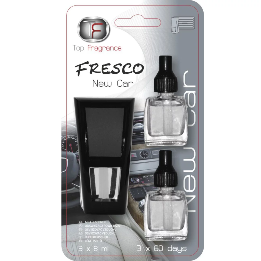 Zapach do samochodu kratki nawiewu Długotrwały 3 x 60dni Top Fragrance Fresco 3w1 New Car / Nowy Samochód