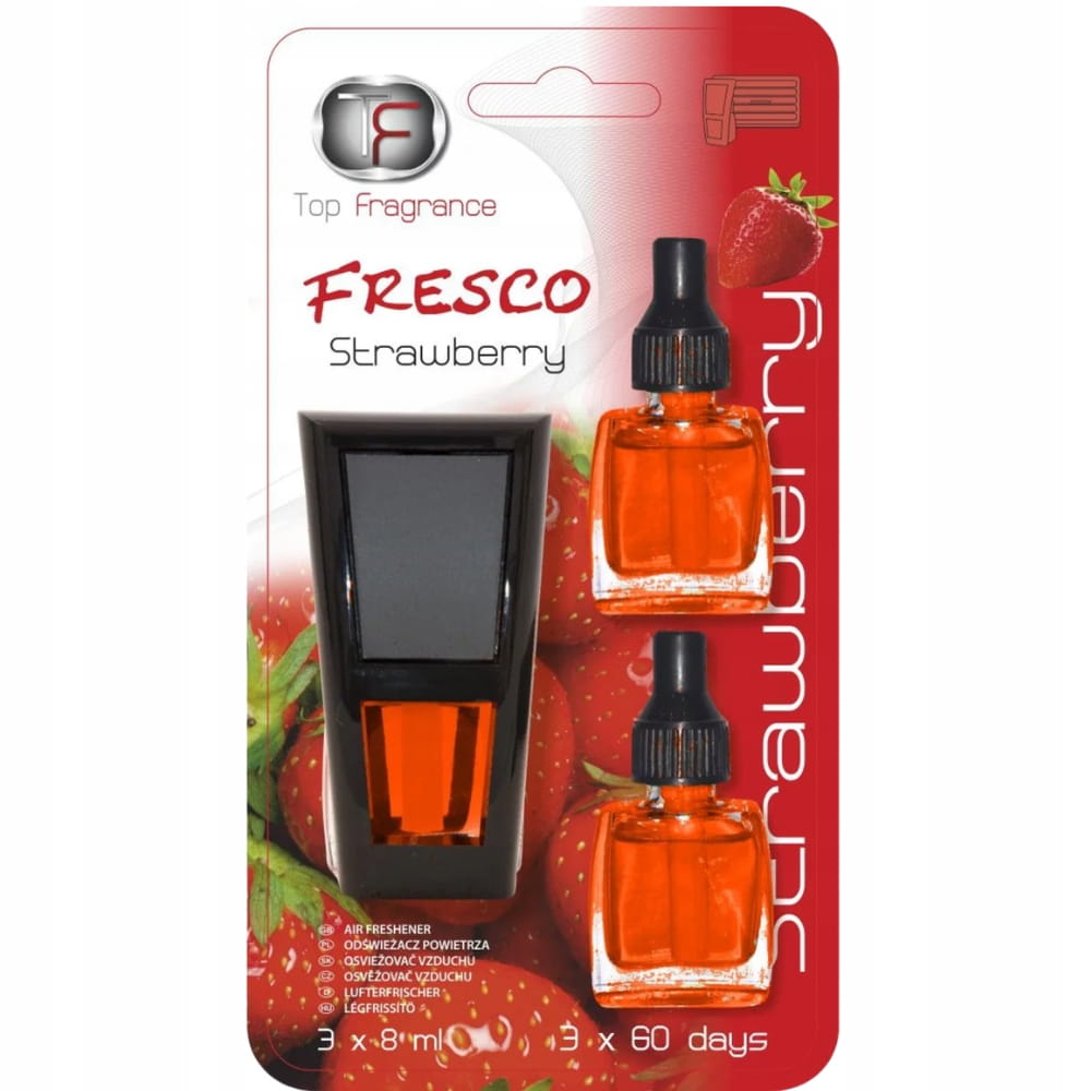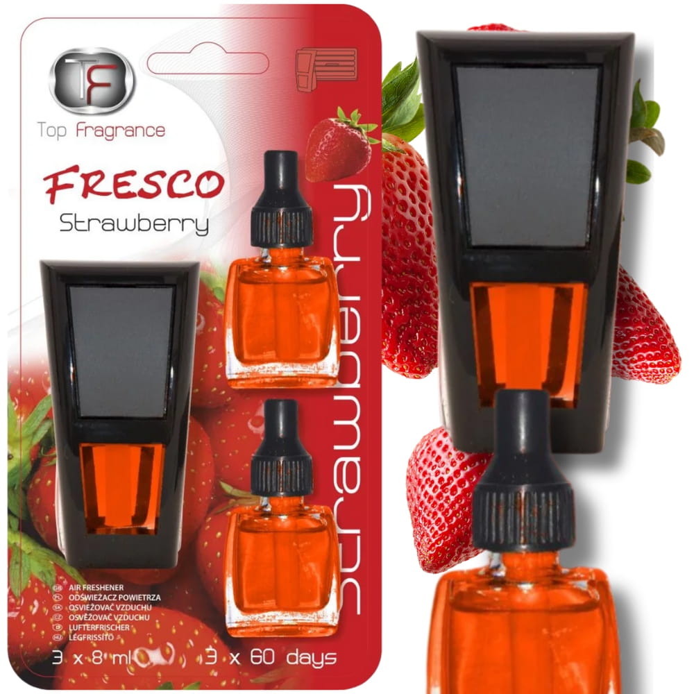 Zapach do samochodu kratki nawiewu Długotrwały 3 x 60dni Top Fragrance Fresco 3w1 Strawberry / Truskawkowy