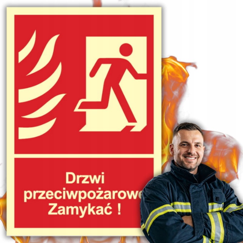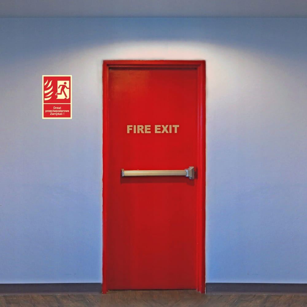 ⚡Znak Drzwi ppoż. Zamykać! Kierunek drogi ewakuacyjnej w prawo