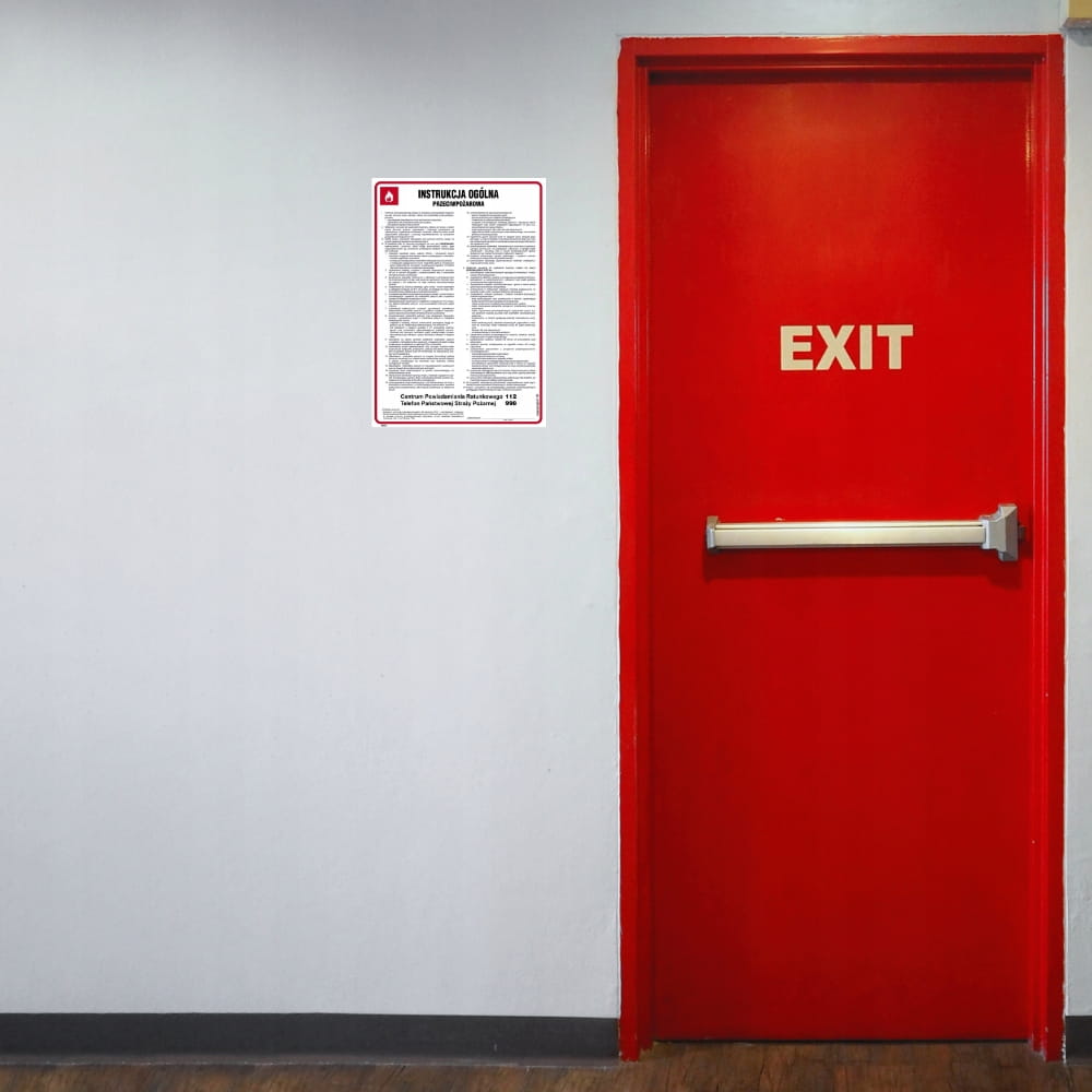 Znak Instrukcja BHP ogólna przeciwpożarowa 24,5x35 cm PCV Samoprzylepna