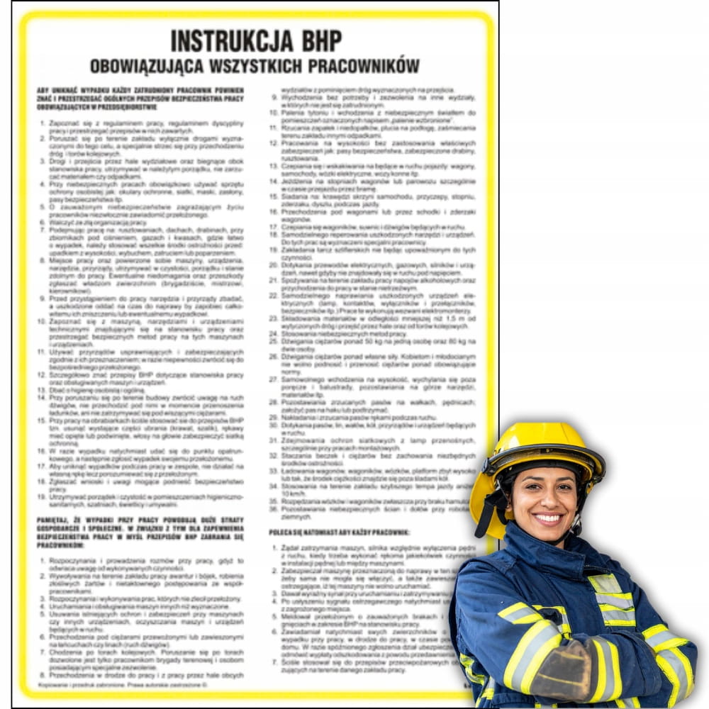 Zgodnie z prawem, każdy pracodawca ma obowiązek udostępnić instrukcję ogólną BHP wszystkim pracownikom w miejscu widocznym i łatwo dostępnym. Plansza stanowi ważny element kontroli bezpieczeństwa pracy i podlega weryfikacji przez Państwową Inspekcję Pracy (PIP). Dzięki niej zapewnisz zgodność z przepisami, bezpieczeństwo personelu oraz profesjonalny wygląd swojego zakładu pracy.
