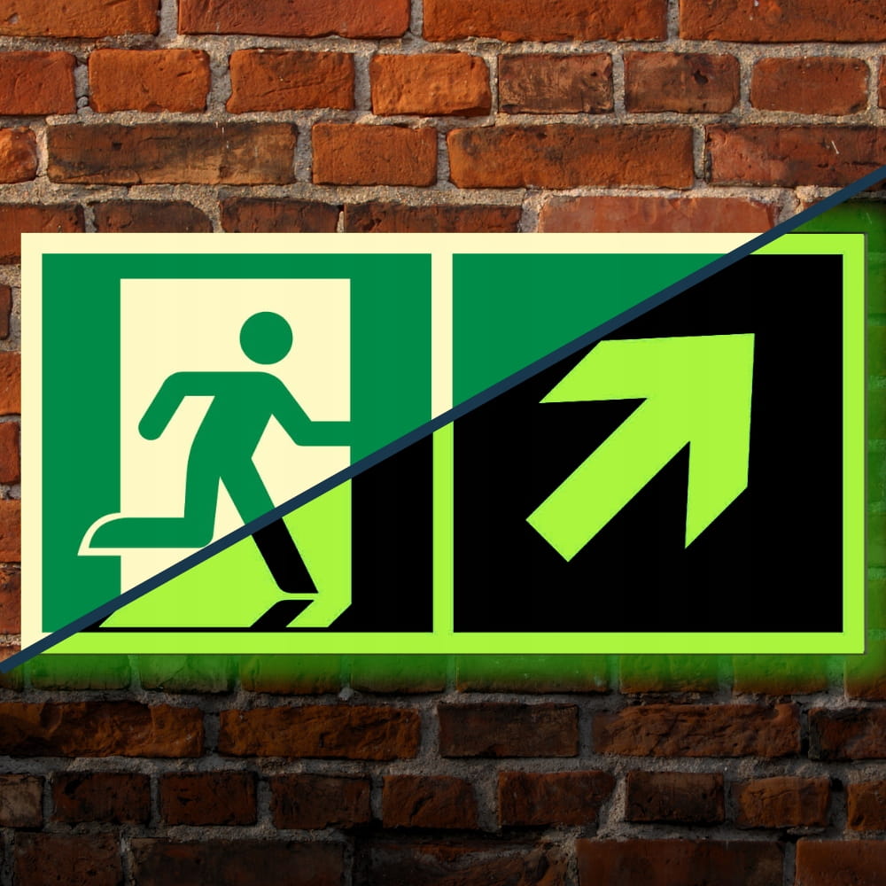 ⚡ Znak Wyjście Ewakuacyjne Prawostronne ze strzałką w Prawo w Górę