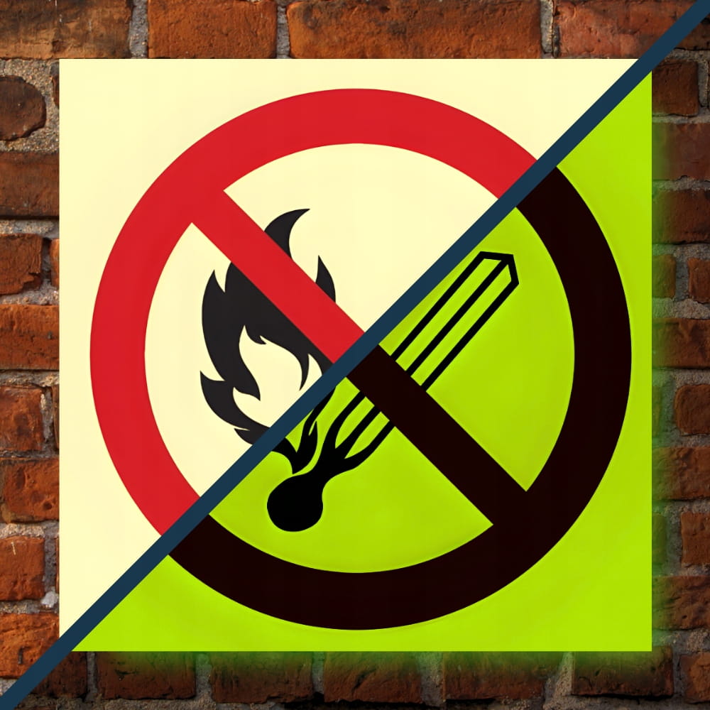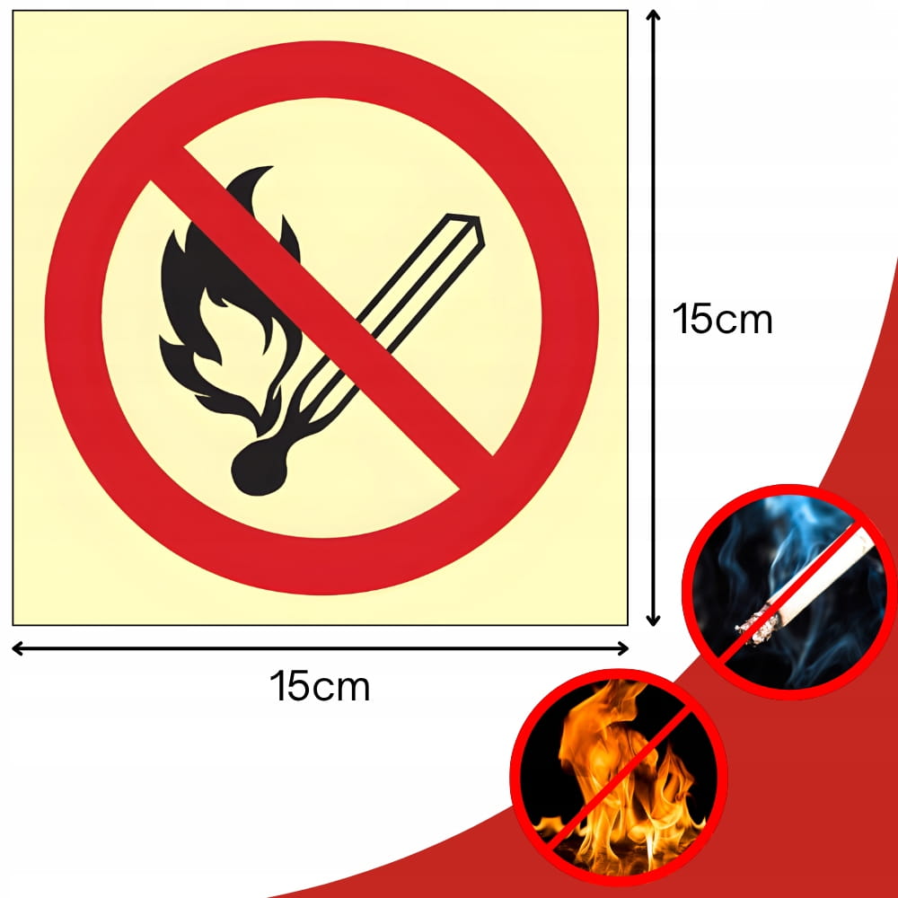 Znak ochrony PPOŻ Zakaz używania otwartego ognia i palenia tytoniu 15x15 cm płyta PCV fotoluminescencyjna