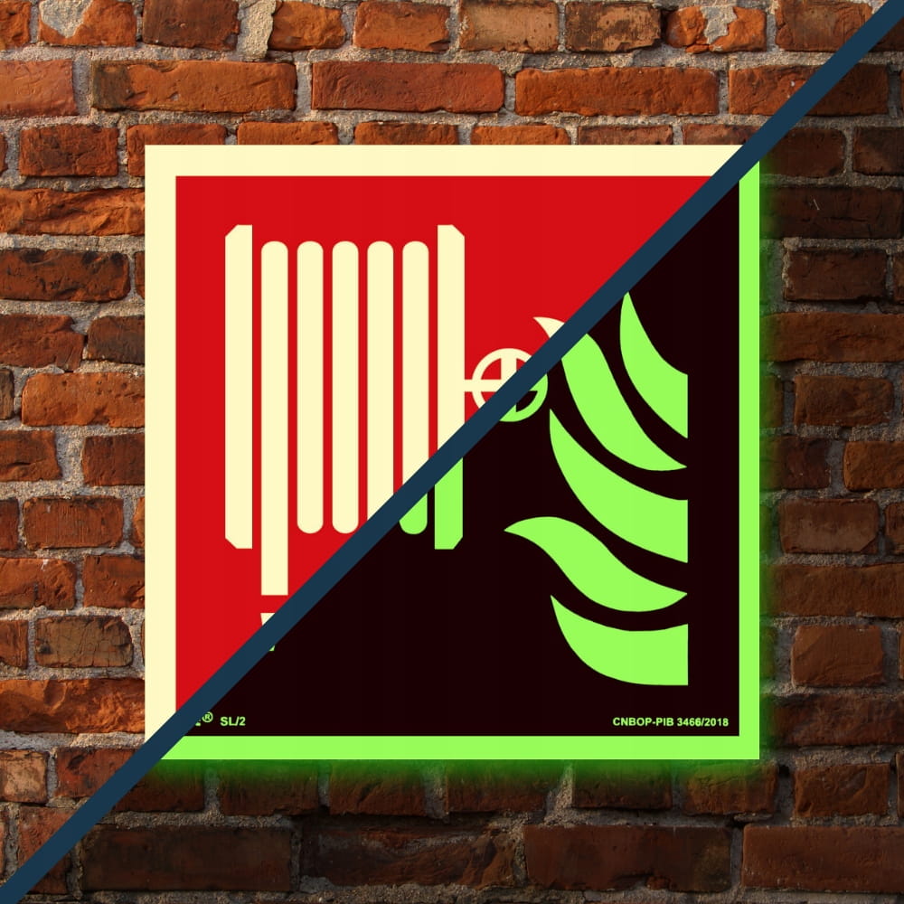 Znak ochrony PPOŻ Hydrant Wewnętrzny 15x15 cm PN-EN ISO 7010:2012 płyta PCV fotoluminescencyjna certyfikat CNBOP