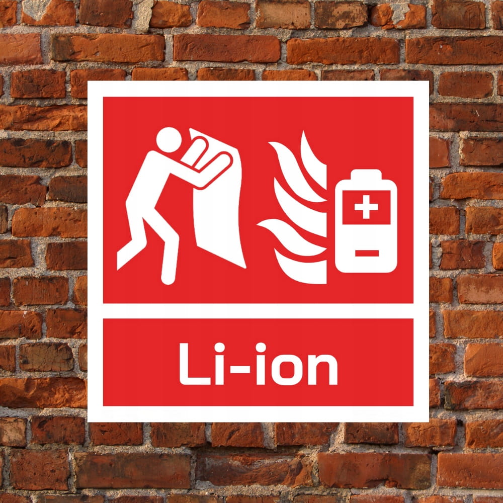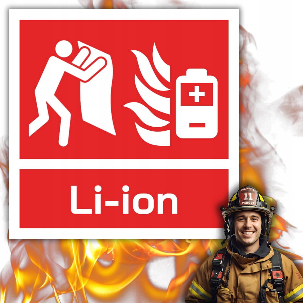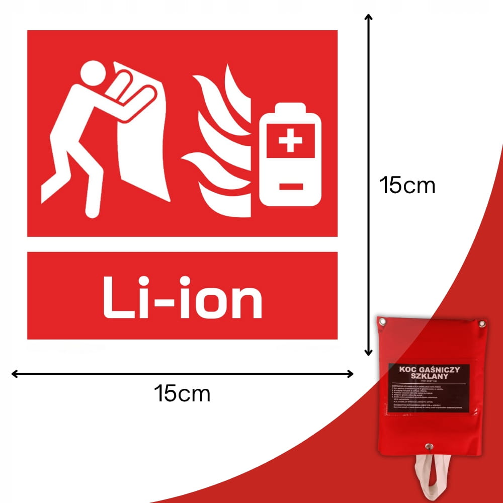 Znak ochrony PPOŻ Koc Gaśniczy do gaszenia baterii i akumulatorów Li-ion 15x15 cm płyta PCV