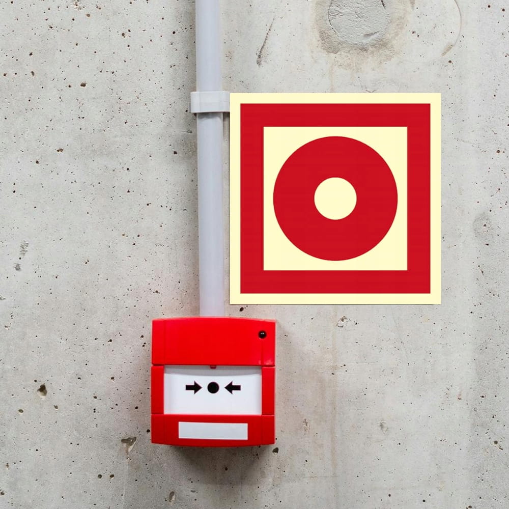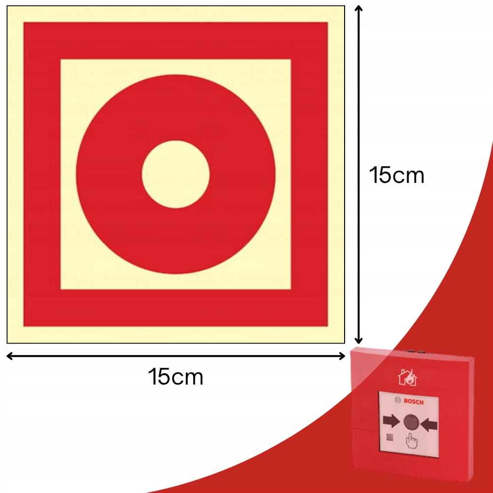 Znak ochrony PPOŻ Przycisk alarmowy 15x15 cm płyta PCV fotoluminescencyjna